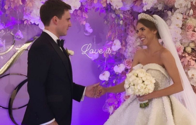 У мережі вже з'явилися перші фото і відео розкішної церемонії. Катя була одягнена у пишну сукню зі шлейфом та відкритим верхом, яка їй дуже личить. Сукня була повністю розшита перлами, і її загальна вага склала 23 кілограми! Завершували образ довга фата та діадема, прикрашена каменями.