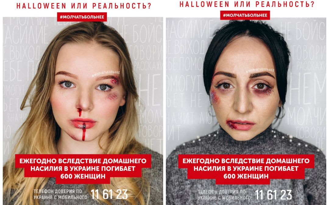 Одеський салон краси Generation Girls вирішив не запускати традиційну рекламу макіяжу на Хелловін. Замість цього візажисти зробили моделям макіяж, який зображає справжні побої, які терплять жінки від чоловіків. На плакатах є напис: «Щорічно внаслідок домашнього насильства в Україні гине 600 жінок».
