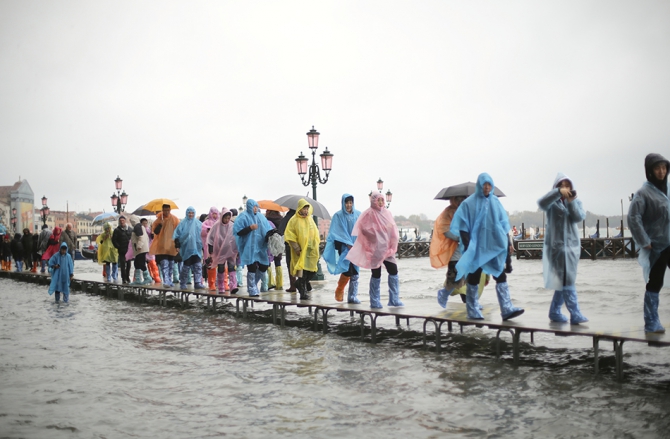 У Венеції велика повінь - рівень піднявся до критичної позначки у 187 сантиметрів. Це вже другий масштабний потоп у місті з 1923 року. Тоді вода вперше піднялася на такий рівень, а у 1966 році через сильний дощ рівень води досяг 194 сантиметрів.