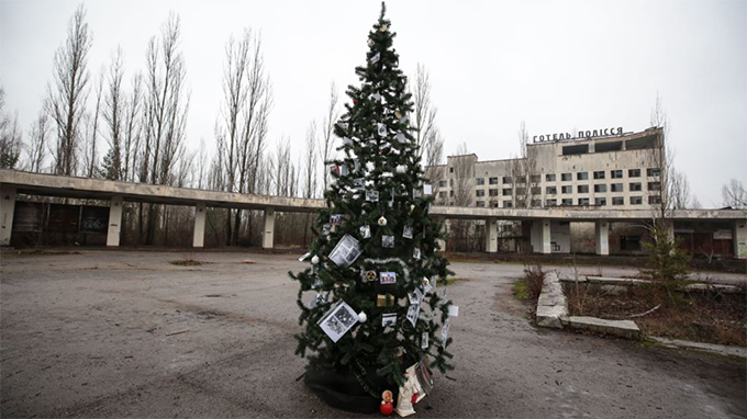 У Прип'яті на центральній площі встановили новорічну ялинку - вперше за 33 роки після аварії на Чорнобильській АЕС. Ініціатива належить туроператорам, які продають екскурсії в Чорнобильську зону.