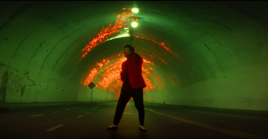 У ролику Blinding Lights співак мчить освітленою вогнями трасою, дико сміється та танцює як Джокер .