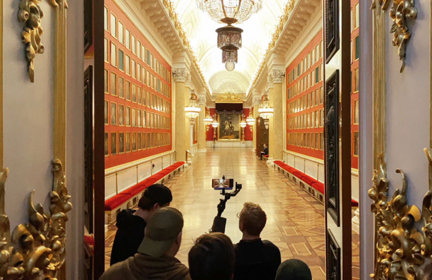 Зйомки проходили в понеділок, коли Ермітаж не приймає відвідувачів. Через специфіку майданчики, на якій не можна використовувати професійну важку техніку, у команди не було жодної повноцінної репетиції - довелося імпровізувати. Всі члени знімальної групи були одягнені в спеціальні чорні костюми з Балаклави, щоб не відбиватися від скляних поверхонь.